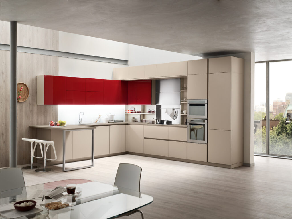 Découvrez toutes les finitions rouges dans le nouveau catalogue Veneta Cucine.