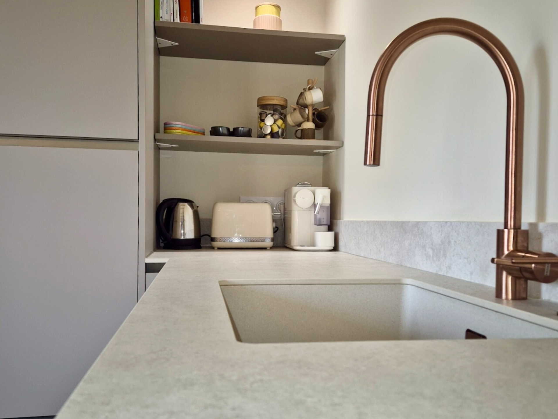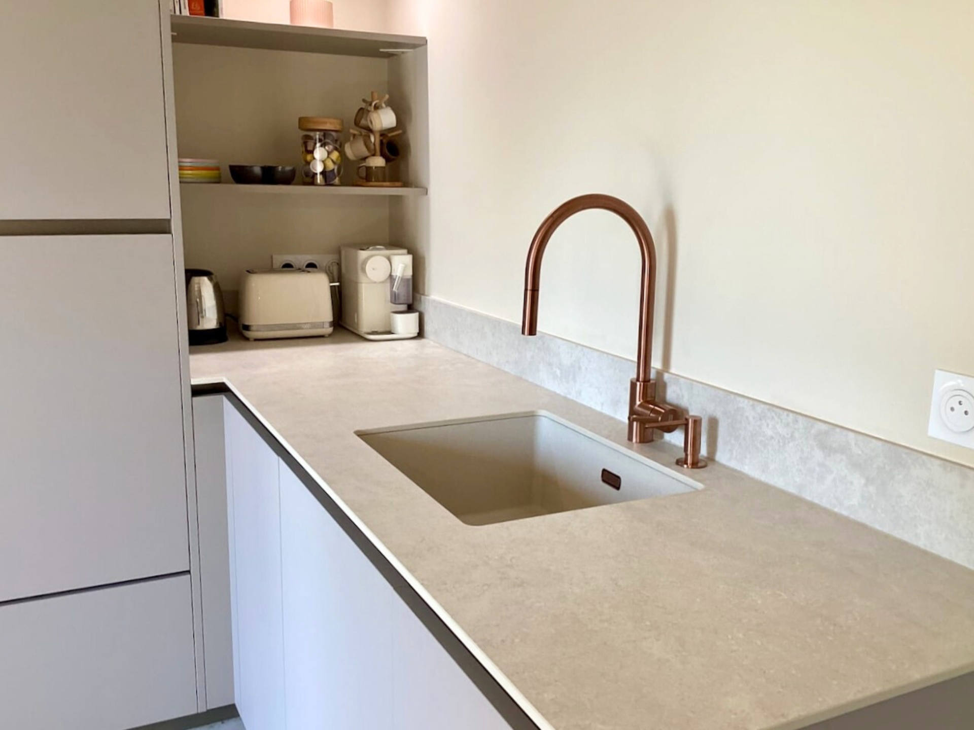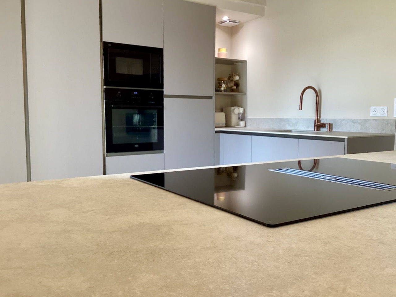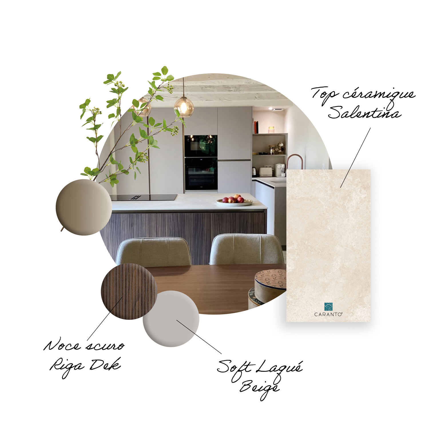 Le plan de travail en céramique Salentina de la gamme Caranto complète l’ensemble avec raffinement, conjuguant esthétique et robustesse au quotidien.