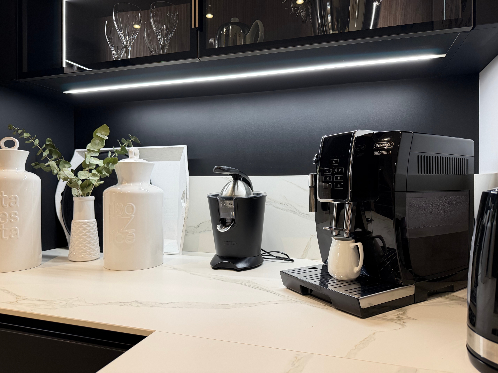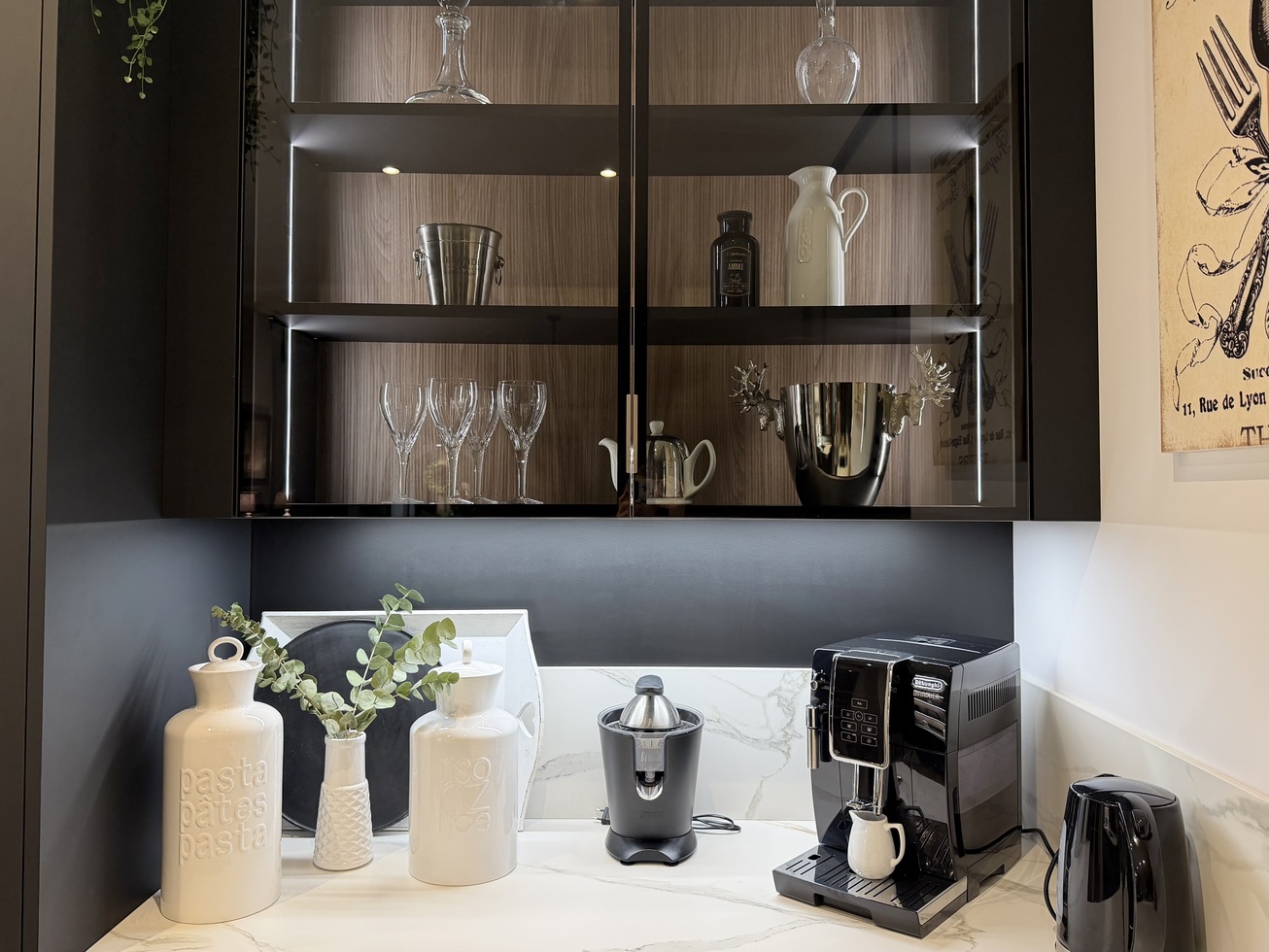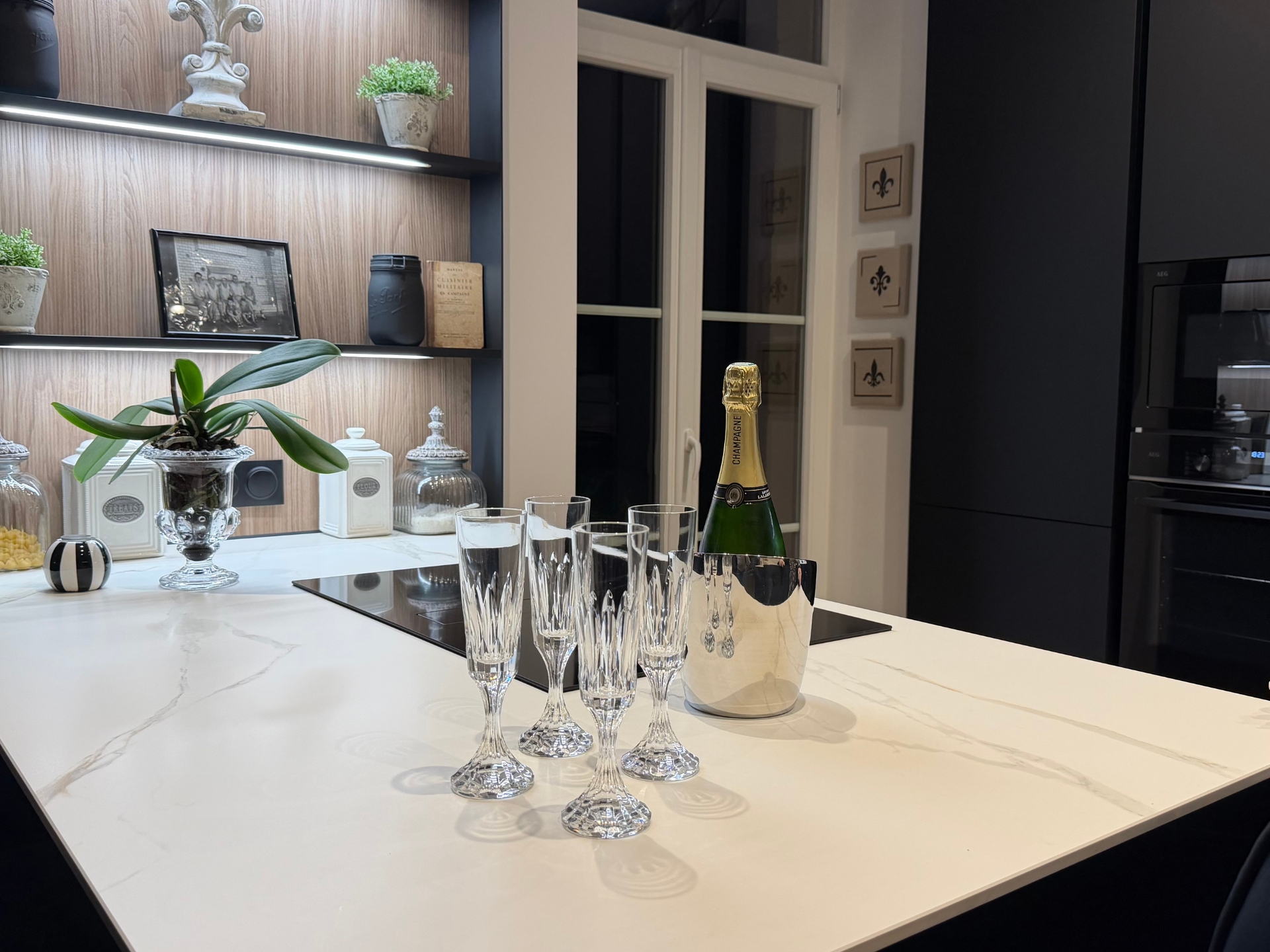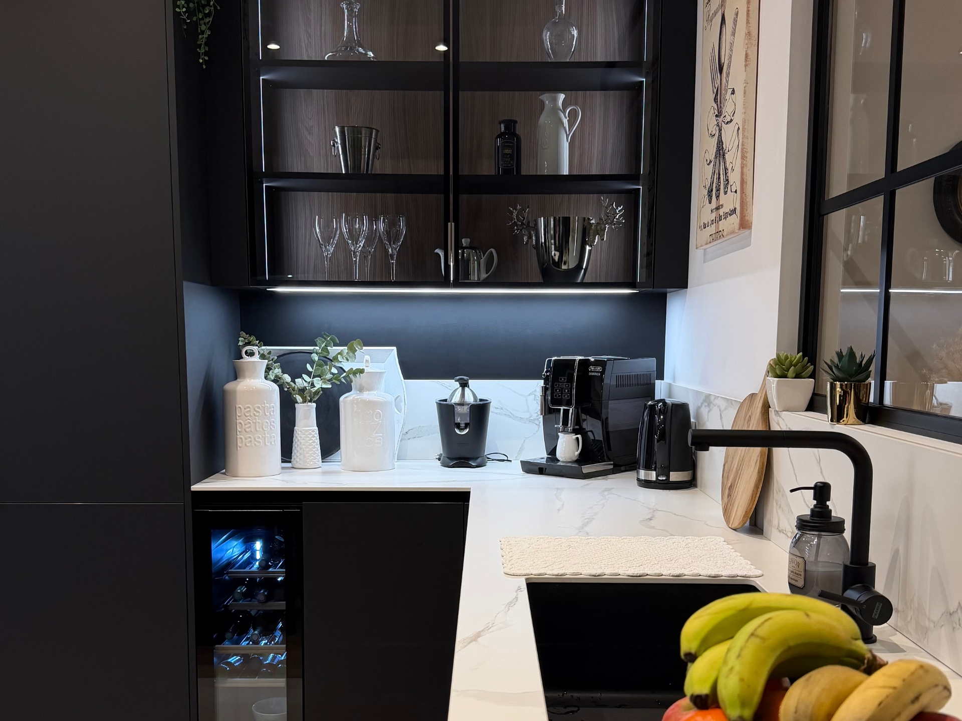 Nous avons découvert Veneta Cucine grâce à un ami travaillant dans l’immobilier et partenaire de Veneta Cucine Épinal. Dès le départ, nous avions une idée très précise de notre future cuisine : façades noires, plans en céramique et sans électroménager intégré, des choix bien définis.