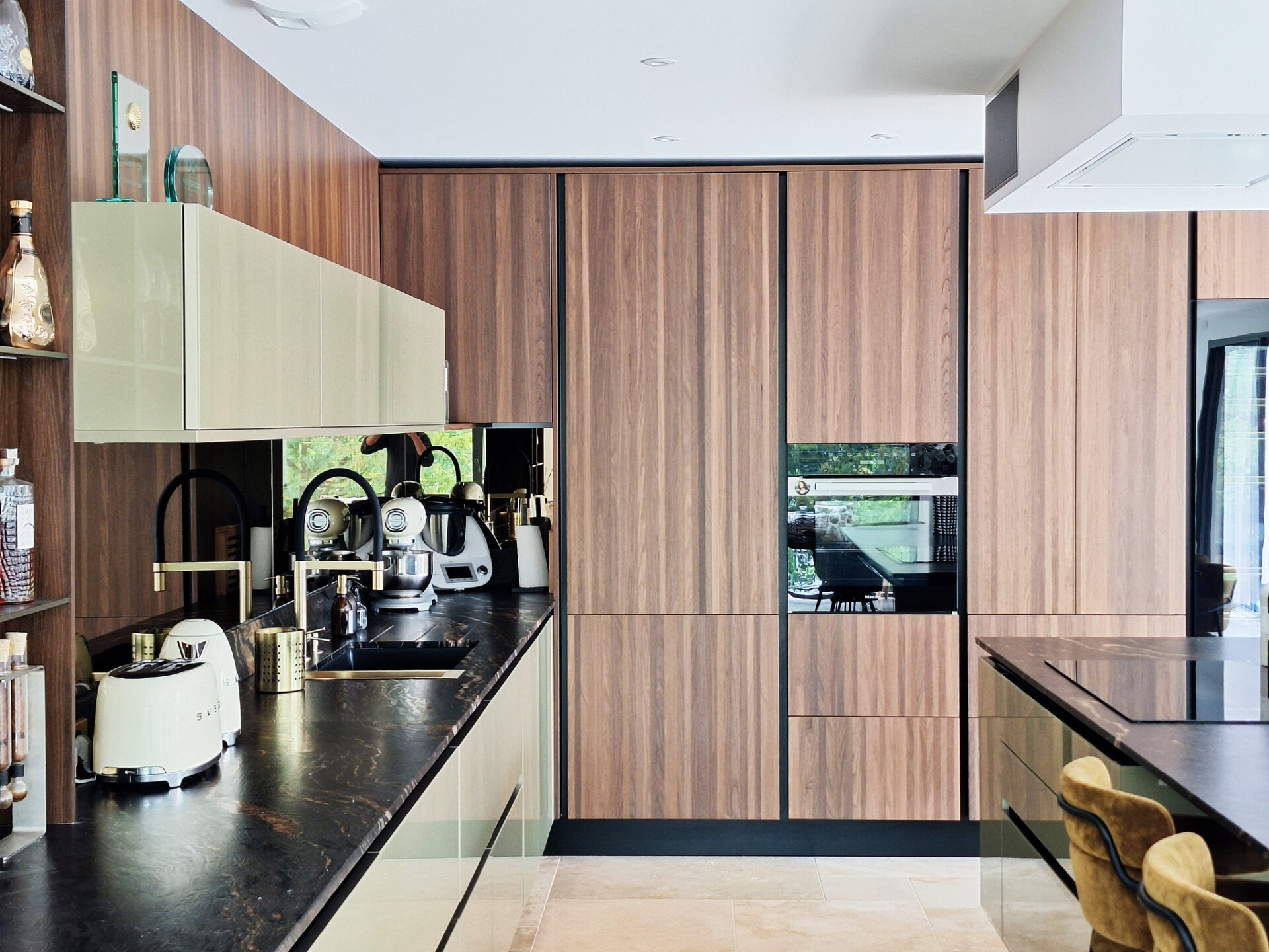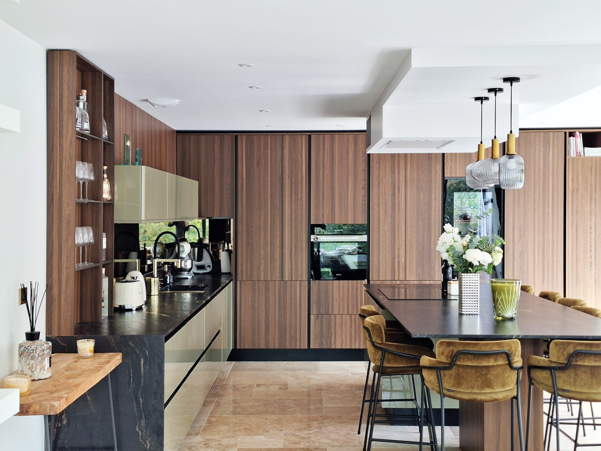 Dès le début, son souhait était clair : fusionner la cuisine et la salle à manger. Un défi que nous avons relevé en créant un espace unique et convivial, où tout tourne autour de l’essentiel : le plaisir de partager.